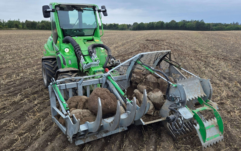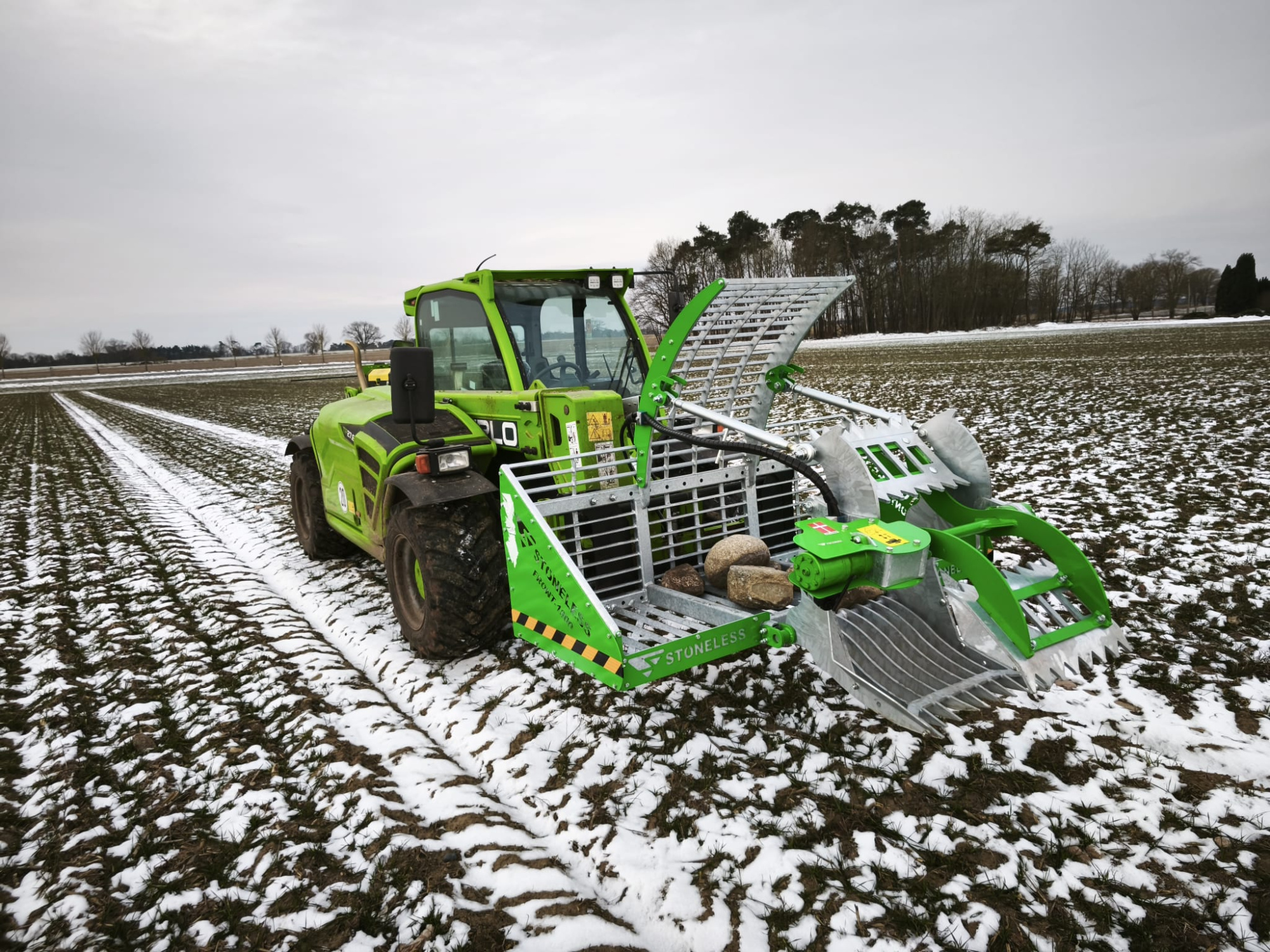 Pacēlājs var iekraut kausā akmeņus izmērā līdz 50cm, savukārt lielākos līdz 75 cm var pacelt, pieturēt ar rotoru un nonest no lauka uz pacēlāja. Papildaprīkojumā ar sānu pacēlāju var pacelt akmeņus izmērā 25-100cm.